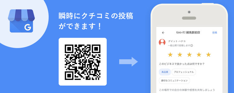 Google ビジネスプロフィールへのクチコミ投稿が瞬時に可能です!